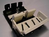 I start out by making the buckle, which isn't as hard as it sounds. I measure out 4 pieces on a piece of DYMO tape, .5mm wide and .6mm long. The hole for the belt is .1mm by .3mm. I cut that out before cutting out the individual buckle pieces using two different sizes of precision flat blade screwdrivers that I have filed down sharp. I drill two holes in the "tongue" portion and use a sharpened screwdriver to trim off the excess inbetween the holes. I then cut out the buckles and chop a small triangular piece off of each corner to make each corner look round. You will probably have to use something to re-flatten them at this point because aluminum is soft and likes to bend. Thread a piece of ribbon through one end of the buckle and use either super glue or two-sided tape on the back to hold the two pieces together. Make sure the pieces are together tightly next to the buckle. Take four square studs and bend one prong down inside each one of them. Lay a piece of ribbon inside the back side and bend the other three prongs down over the ribbon. Now you have four belts with buckles and four belts with latches. For cars with back seats, I turn the interior tub over and where the seat back and seat bottom meet, I file four holes until it just comes through to the inside and then trim 4 small, rectangular holes to slide the belts through, from the inside. Then glue the ends down on the outside of the tub. The buckle portion usually needs something like a very small piece of two-sided clear tape to hold it to the seat so it is not hanging in the air. Attachment for the front belts is going to be different for every car. Shoulder belts could be made the same way. . .